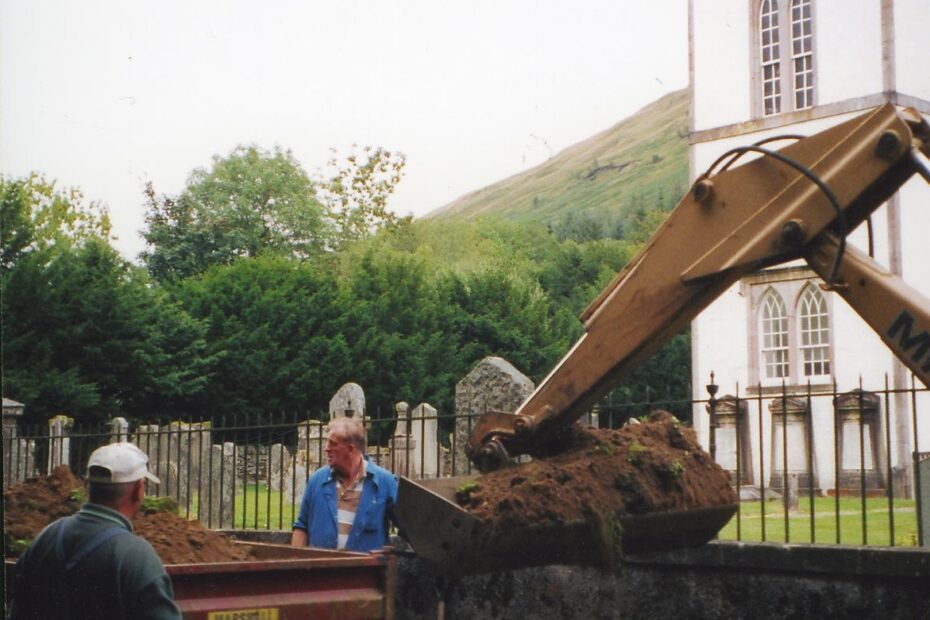 Taking banking away at Kilmorich Church Physical Description: Colour Photograph Subject: Kilmorich Church, Banking