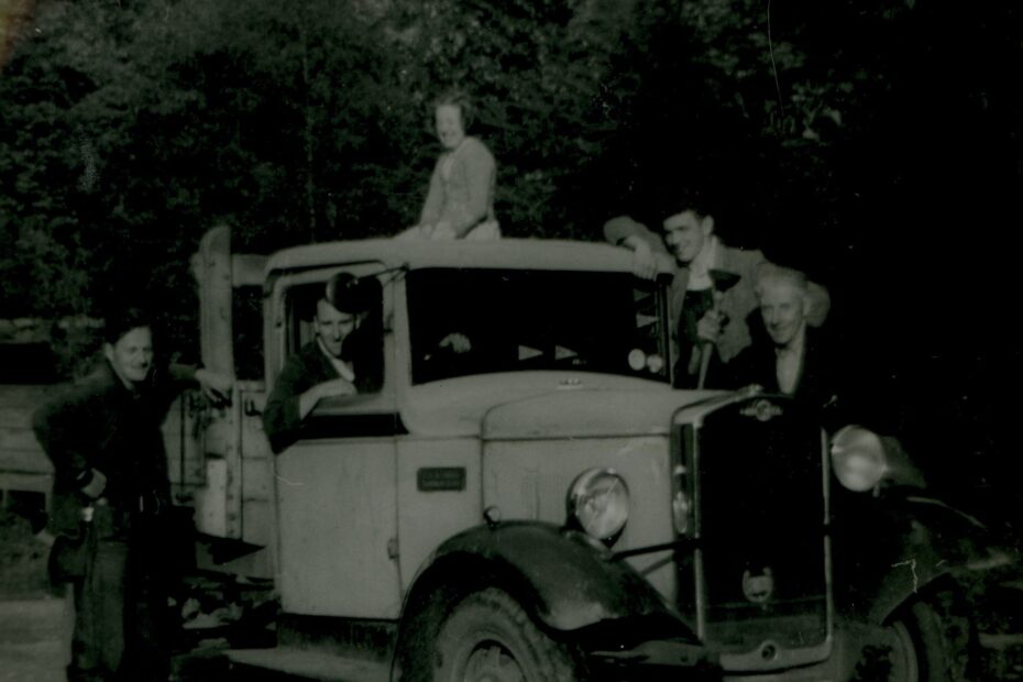 Ardkinglas Estate Workers Physical Description: Black And White Photograph Subject: The Square, Lorry, Transport