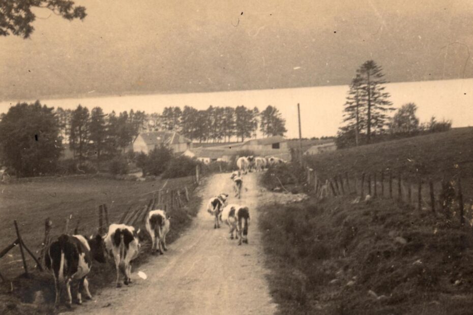 Cows Going To Be Milked Physical Description: Black And White Photograph Subject: cows, Ardno Farm