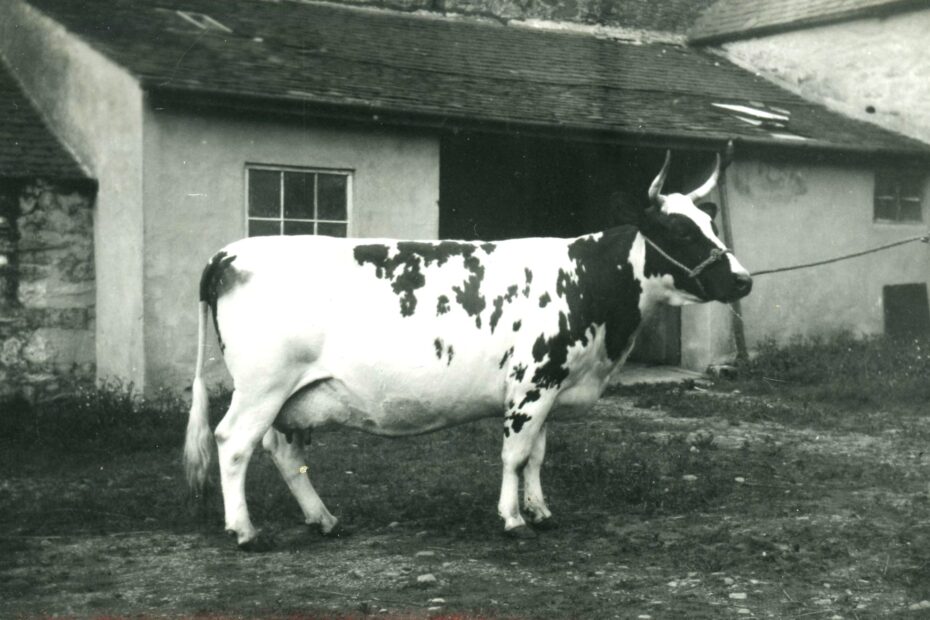Buttermilk The Cow Physical Description: Black And White Photograph Subject: cow, Achadunan