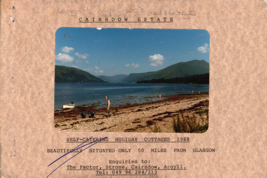 Cairndow Estate holiday cottages brochure 1988. Document in archive cupboard.