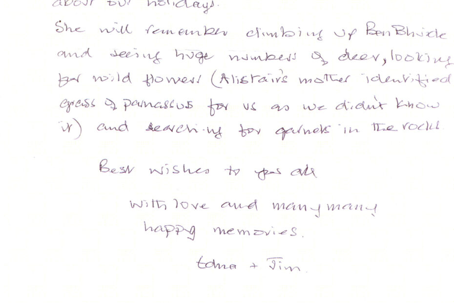 Holidays in Inverchorachan by Edna and Jim Seed in the early 1970s. Letter to Christine MacCallum 2014.