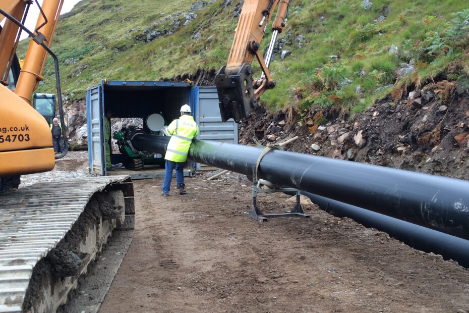 Merk Hydro Physical Description: Colour Photograph Subject: Merk Hydro, Pipes, Digger