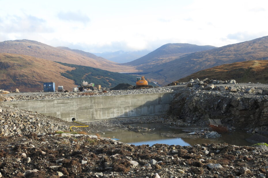 Merk Hydro Header Pond Construction Physical Description: Colour Photograph Subject: Merk Hydro, Header Pond, Glen Fyne
