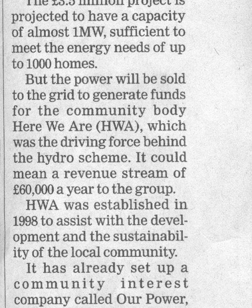 Merk Hydro Opening Newspaper Article Physical Description: Newspaper Cutting Subject: Merk Hydro, The Herald, Here We Are, Newspaper Cutting