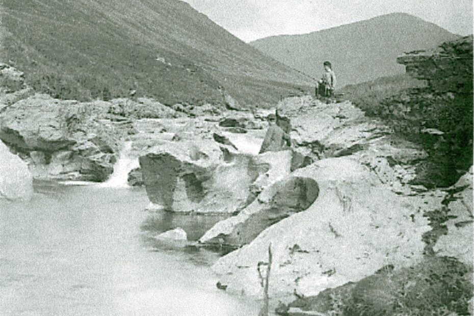 Iain Thornber Collection copyright Physical Description: Black And White Copy Subject: Glen Kinglas, river kinglas, Black Pot, Fisherman, Iain Thornber Collection