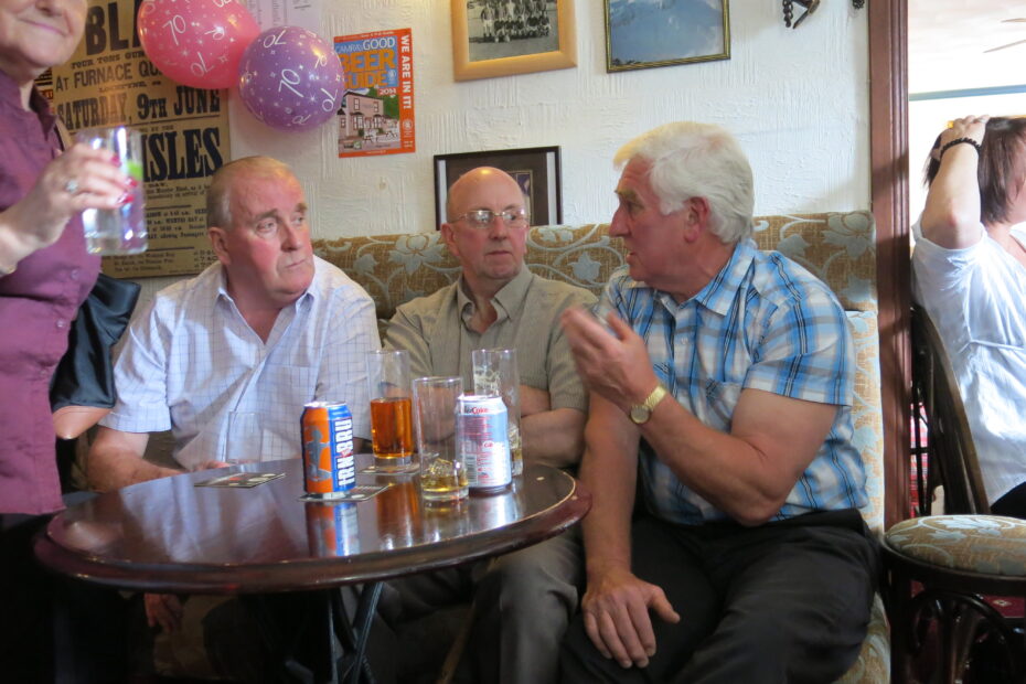 Alastair MacCallum’s 70th Birthday – Fraser White, Agnus Liddell, John Renton. Physical Description: Colour Photograph Subject: 70th Birthday, Cairndow Hotel