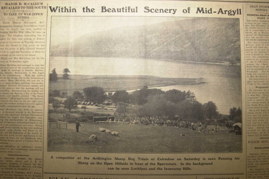 Sheepdog Trials Physical Description: Colour Photograph Subject: Sheepdog Trials, Glen Fyne, Strutts Field, Farming, Agriculture