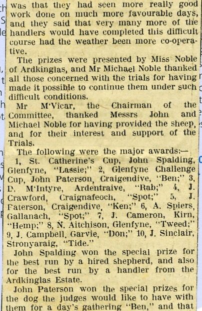 Ardkinglas Sheepdog Trials Physical Description: Newspaper Cutting Subject: Sheepdog Trials, Newspaper Cutting