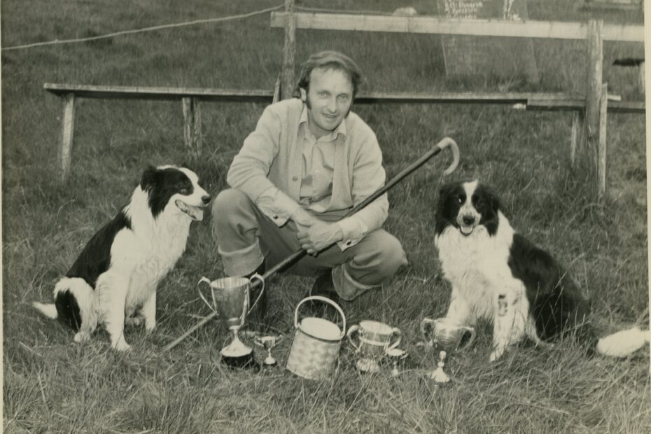 Roddy MacDiarmid, won Scottish Nursery Final with Tam Physical Description: Colour Photograph Subject: Dog (tam), Scottish Nursery Final, Sheepdog Trials, Trophy’s