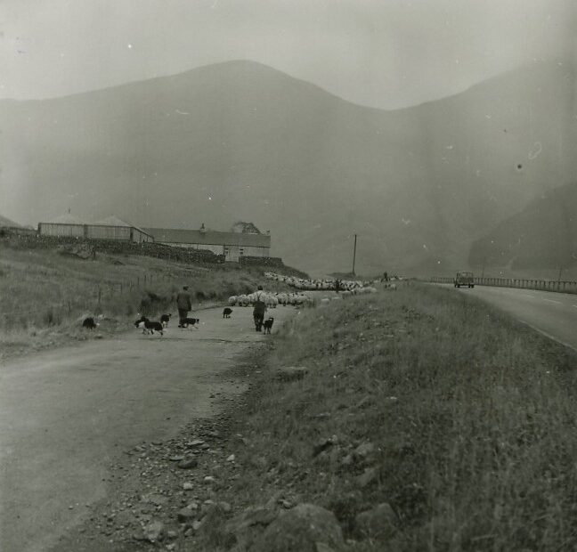 Shepherds at Butterbridge Physical Description: Black And White Photograph Subject: Shepherds, Butterbridge, Gathering, Sheep
