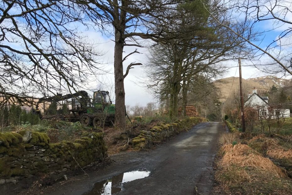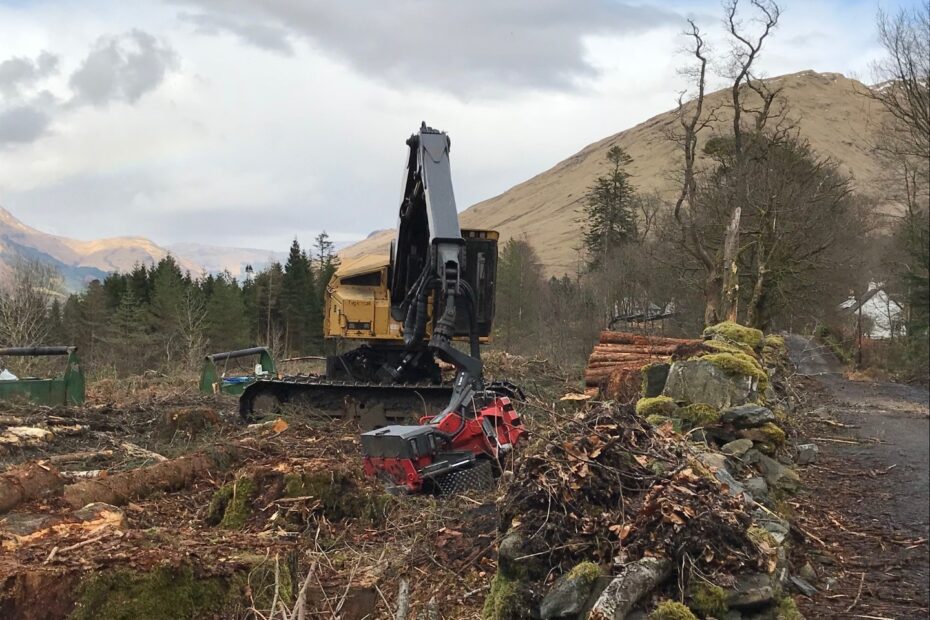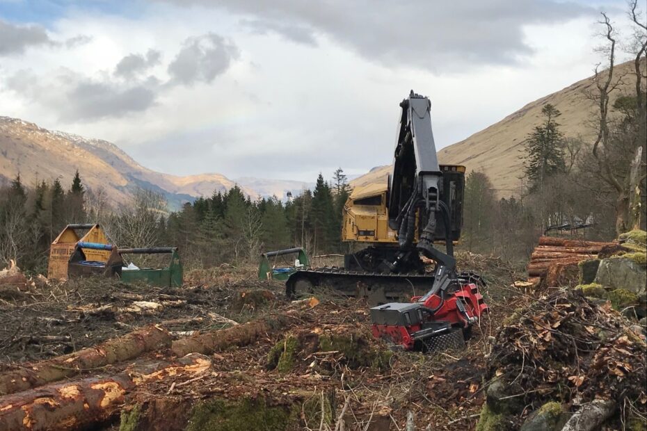Ardkinglas Wood Planting Physical Description: Colour Photograph Subject: Ardkinglas Wood, Planting, Forwarder, Trees, wood