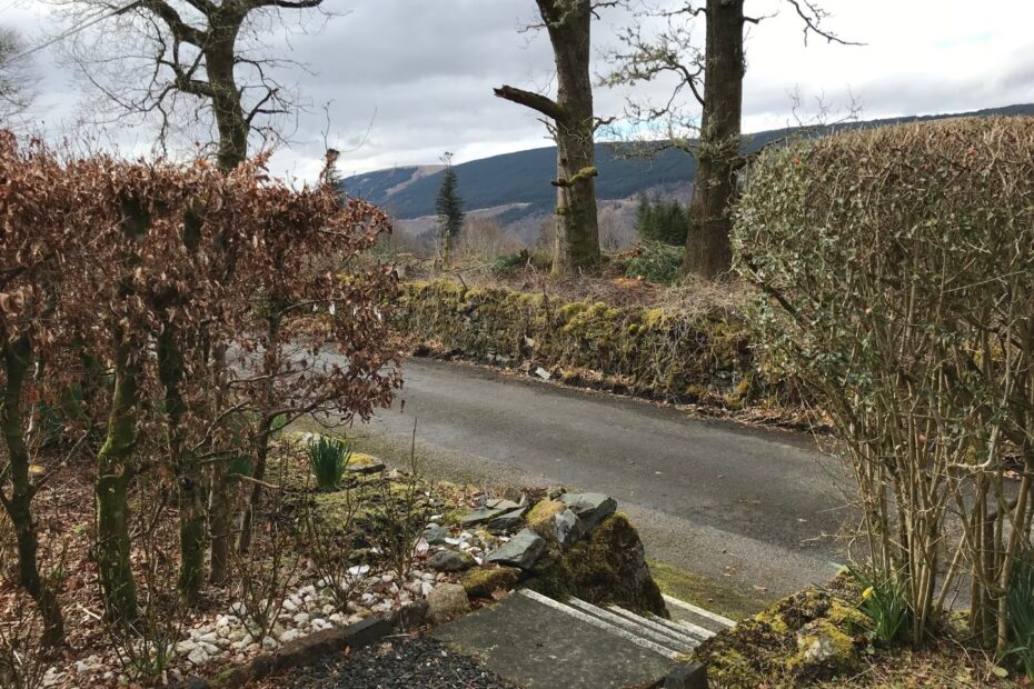Cairndow Village Physical Description: Colour Photograph Subject: Cairndow Village, Snow, Ardkinglas Woodland Trail Gates