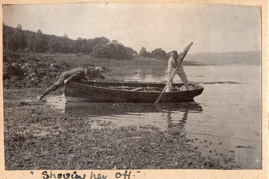 ‘Shoving Her Off’ Ardno Physical Description: Black And White Photograph Subject: Ardno, Boat