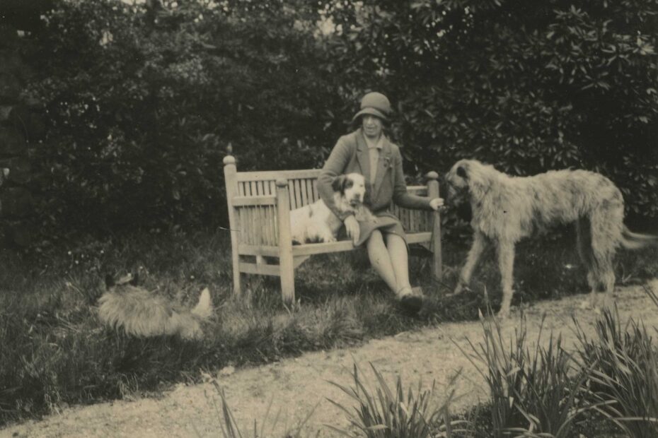 Daisy Powell-Jones Physical Description: Black And White Photograph Subject: Ardkinglas Gardens, Caspian, Dogs, Deerhound