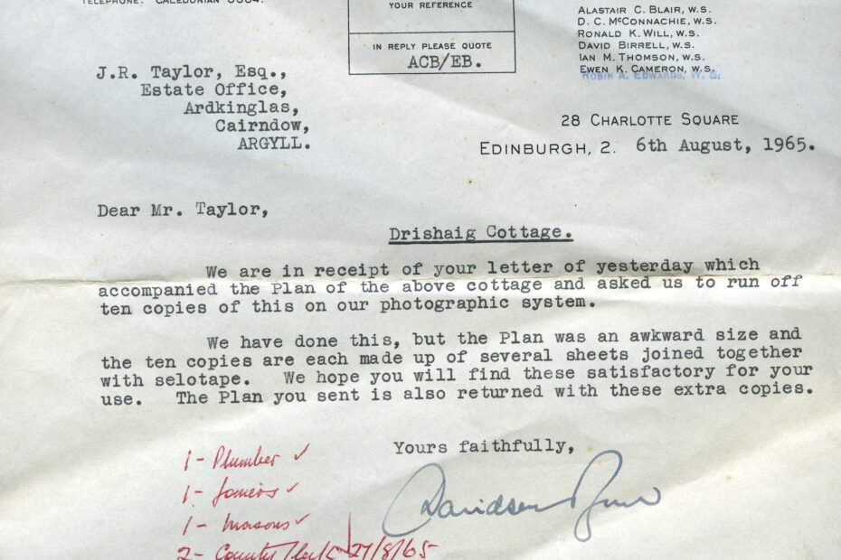 Drishaig Physical Description: Black And White Copy Subject: Letter, Plans, Houses, Drishaig