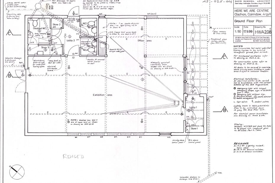 Revised plans for the centre by David Sumsion, January 1999 due to the Scottish Executive’s objections. Plans in archive cupboard.