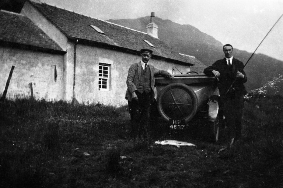 Fishing At Inverchorachan Physical Description: Black And White Photo Subject: Inverchorachan, Fishing, Car
