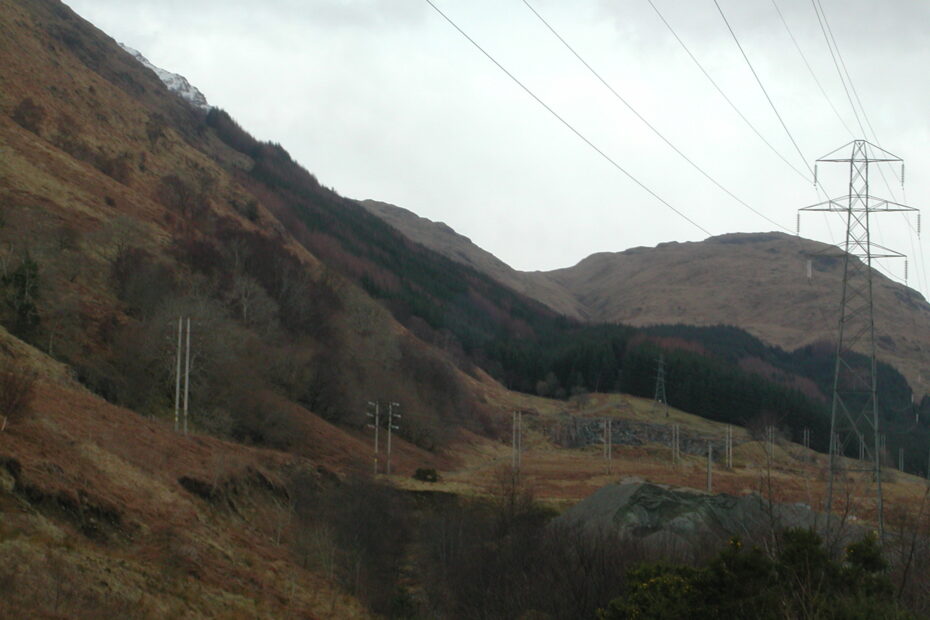 Merk Hydro Progress Physical Description: Colour Photograph Subject: Merk Hydro, monthly progress, Glen Fyne, Pylons
